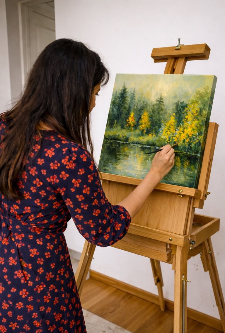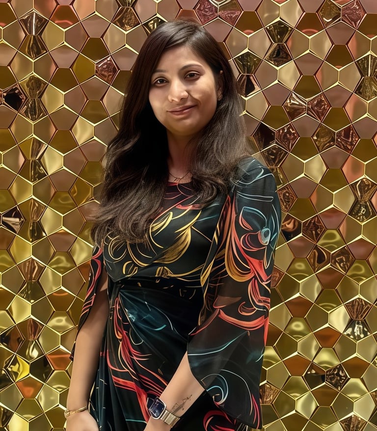 Influenced by her background in engineering and her global journey, her artworks balance precision with expressive depth.