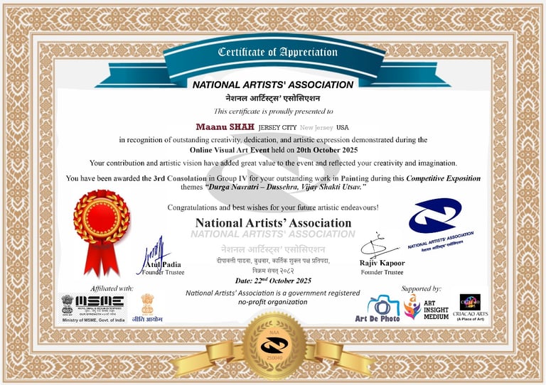Selected showcases highlighting Artist Maanu Shah’s work
